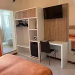 The rooms comprise a balcony complete with air conditioning, as well as a flat-screen TV with satellite channels. They are furnished with light-wood furniture featuring a writing desk. Providing a sink, the bathrooms also have shower caps.